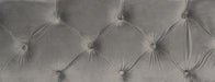 • Gray velvet-covered, rolled, padded headboard and footboard