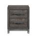The sleek design of the Zephyr Collection pairs clean lines with modern convenience to create a style that will be the perfect palette for your design aspirations. Visually tying the nightstand together are the painted metal-finish banding of the base rail and the metal bar hardware that fronts each drawer, culminating in an accenting contrast to the dark gray faux wood finish of the melamine veneer.
