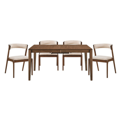 Homelegance (Fremont Warehouse)Product DescriptionMid-Century Modern inspires the design of the Leawood Collection dining offering. Beige textured fabric upholstery covers the se...
