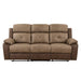 Rest and relaxation are on the list of things to do this weekend and the Glendale Collection is here to help. Plush seating is paired with a gentle gliding motion making your downtime a comfortable experience. Offered in brown polished microfiber, the collection features contoured seating, and plush arms. The sofa has dual reclining ends as well as manual motion mechanisms which operate with the pull of a side-mounted tab, that once engaged, takes you from seated to reclined in an easy motion. 84 x 39 x 40.5H
