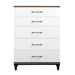 Tasked with executing a design that encompasses the trademarks of contemporary design while including hints at a glamorous lifestyle, the Niles Collection perfects the look. Brushed gold-tone knob and bar hardware radiate from the two-tone white and cherry finish of the collection, the dramatic combination creating an elegant statement of design perfection. Routed panels front the chest while gold-finished trim further accents the piece. 40 x 18 x 54H
