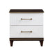 Tasked with executing a design that encompasses the trademarks of contemporary design while including hints at a glamorous lifestyle, the Niles Collection perfects the look. Brushed gold-tone knob and bar hardware radiate from the two-tone white and cherry finish of the collection, the dramatic combination creating an elegant statement of design perfection. Routed panels front the nightstand while gold-finished trim further accents the piece. 28 x 17 x 28.5H