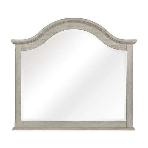 In nod to modern farmhouse design, the Mossbrook Collection features a classic profile that will be a perfect addition to your home’s décor. The pine solids and oak veneer of the collection feature a light gray finish, subtly highlighting the wood’s grain. The dark brown tops of the dresser, chest and nightstand provide contrast, as do the metal knobs that front the drawers. The vertical slats of the low-post bed lend classic styling to the collection, their heights following the curved profile of the headboard and footboard, each corner topped with a turned finial.