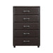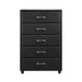 The contemporary design of the Lorenzi Collection is enhanced by the addition of the durable black faux leather covering that encases the chest of the collection. Silver tone hardware provides a distinct contrast to the faux leather covering. Scaled for urban living, this collection will prove to be a unique and stylish addition to your bedroom.