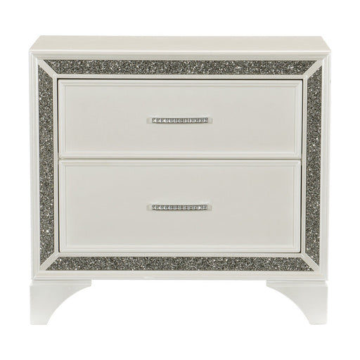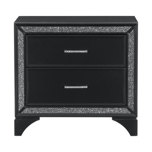 Glamour abounds with the addition of the Salon Collection to your bedroom. The black pearlescent finish is enhanced by the sparkling silver glitter trim that frames the nightstand and the faux-crystal chrome bar hardware pulls that front each drawer.